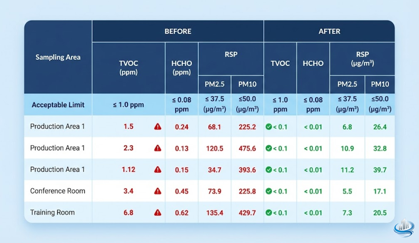 Air flushing is a 24-hour decontamination cycle that removes post-construction pollutants like formaldehyde, VOCs, and dust ($PM_{2.5} / PM_{10}$) before occupancy.