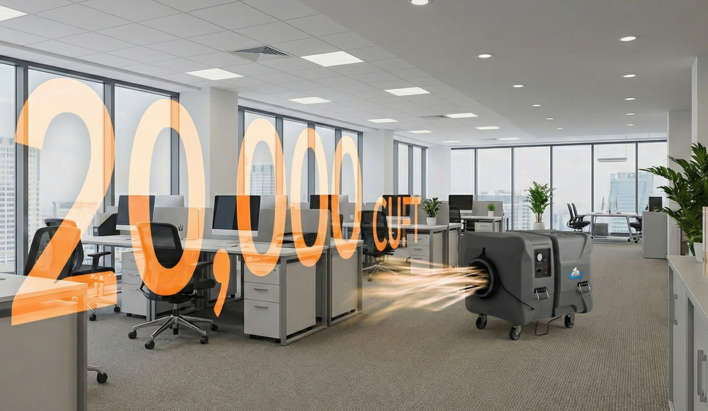 This air scrubber has an adjustable airflow that supports 800-2000 CFM. Designed for large rooms with additional overload protection, excellent performance with low power consumption. The internal fan achieves purification by continuously circulating the air in an enclosed space and repeatedly filtering unnecessary particles. Coverage of up to 2,0000 cu.ft.